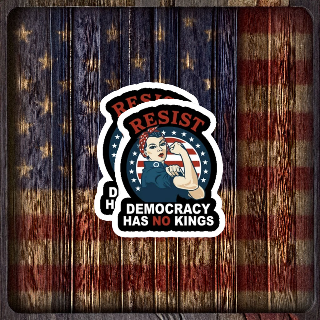 The Resist Democracy Has No Kings Rosie Protest Sticker is more than an accessory — it’s a creative expression of empowerment, civic engagement, and commitment to democratic values.